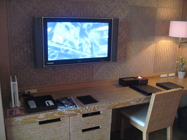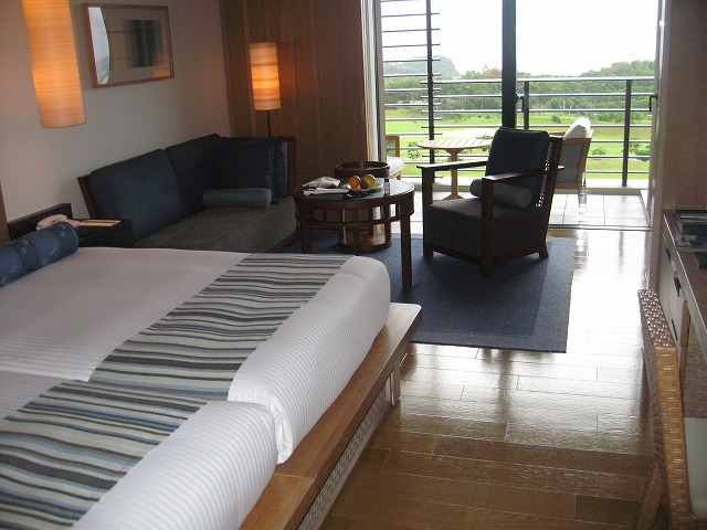 車から見えるホテルは、その気にさせるには十分な風貌でした。部屋数は100弱+コテージが数棟との事でした。ホテルに到着し、パソコンの入ったかばんだけを持ってチェックインです。他の荷物は何も言わなくても、部屋まで届いていました。