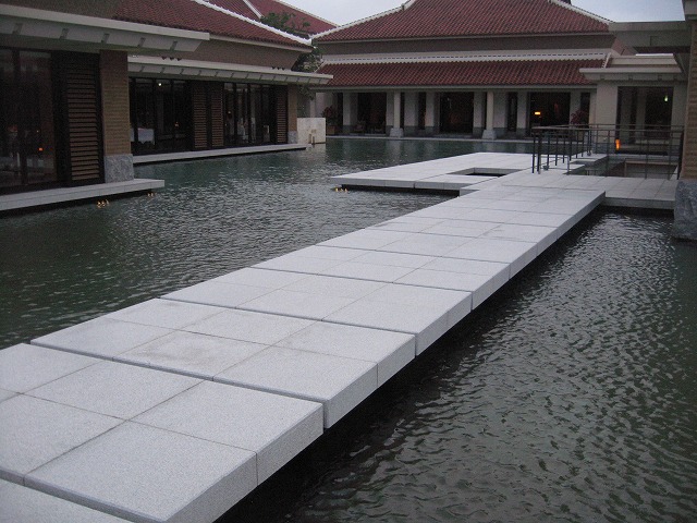 そして扉をくぐるとリゾートの気配満々の建築様式になっていました。建物と水を上手く使っており雰囲気は最高です!オリエンタルヒルズも似たイメージですが、ちょっと暗い感じでした。 (すいません・・・良いホテルなのですがオリエンタルヒルズと比べてしまいます)