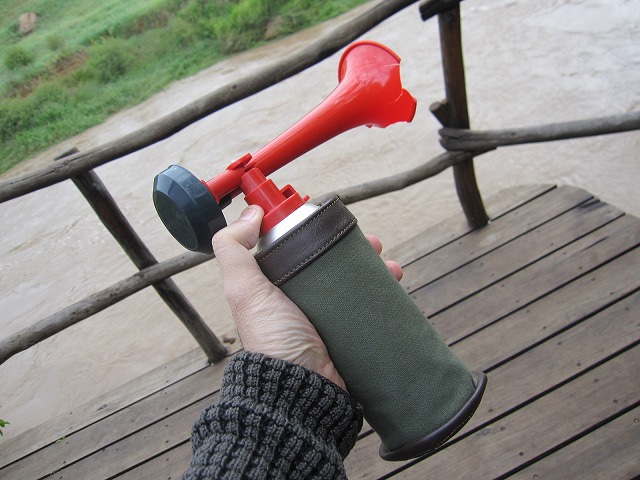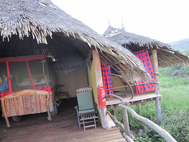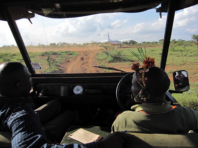 今回はナイロビの空港で日本語が話せるガイドの人が付きます。本当は要らないと思っていたのですが、後で彼は大活躍してくれます。チャーターフライトでロイサバの空港に到着するとホテルのスタッフが待ってくれています。彼の名前はポケットさんです。見た目からしてインパクトが大きすぎです。頭の上の飾りは・・・ラッキー池田を思い出したのは私だけでしょうか???後は総てガイドさんが対応してくれるので私は何もしません。普段はガイドを使用しないので慣れない動きですが、楽と言えば楽です。