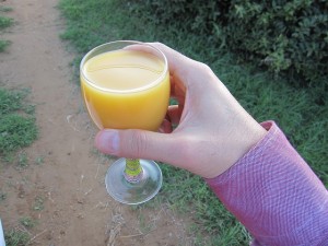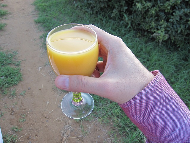 ホテルの前に到着すると吊り橋があり、増水した川を渡って移動します。そうするとスタッフがウエルカムドリンクを持って来てくれます。もちろん喉が渇いていたので一気に頂きます。一応レセプション兼食堂がありますが、それ以外の設備は部屋しかありません。