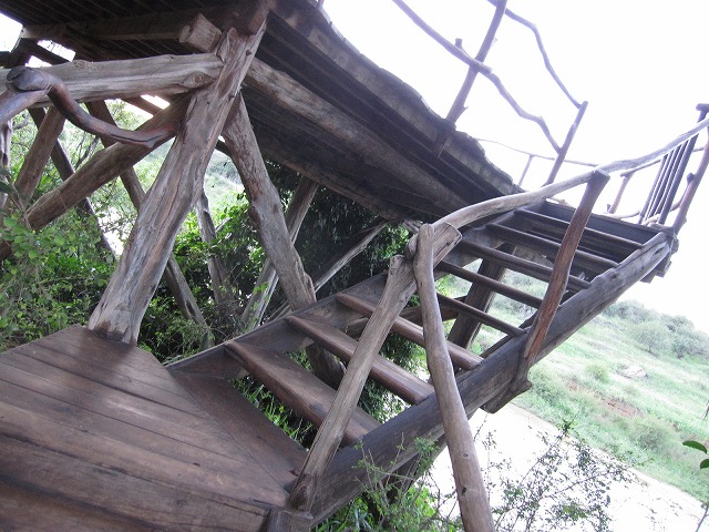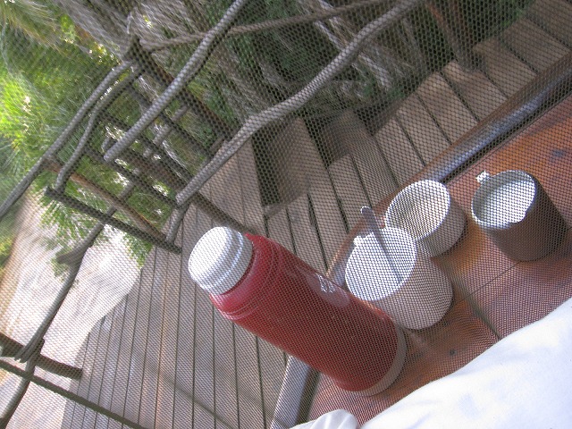 スタッフに連れられて部屋に案内されますが、部屋は階段を登って二階にあります。動物除けの意味もあるようです。初めて目にしますがようやくスターベッドの意味が分かります。ベッド以外の設備はシャワーとお手洗いだけです。でも・・・電気が無いのでどうするのかと聞いたら・・納得です。