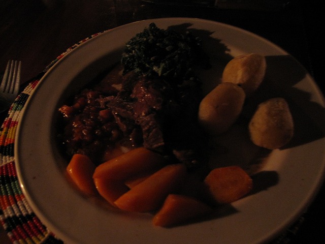 シンプルながらおいしい食事を頂きました。最初のスープは疲れた体を温めてくれます。メインの肉と野菜を頂いて終了です。もちろんお酒もありましたが私は飲まないのでお断りしました。