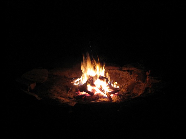 食後は寒いので近くのキャンプファイヤーで体を温めながら時間を過ごします。良いですね、これが欲しかったのです。