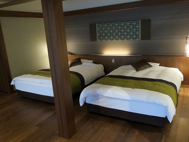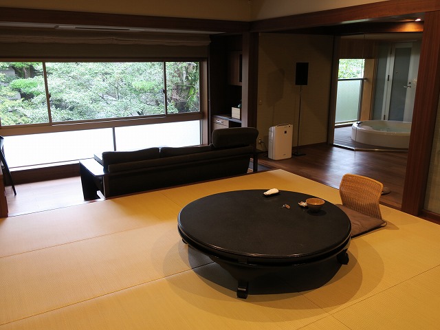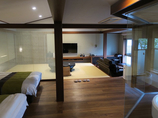 部屋の作りは大きなリビング兼ベッドルームですが中身としては和室+リビング+湯上りリビングとなっています。後はバスルームです。しかし広さが半端ありません。かなりノンビリと過ごせました。