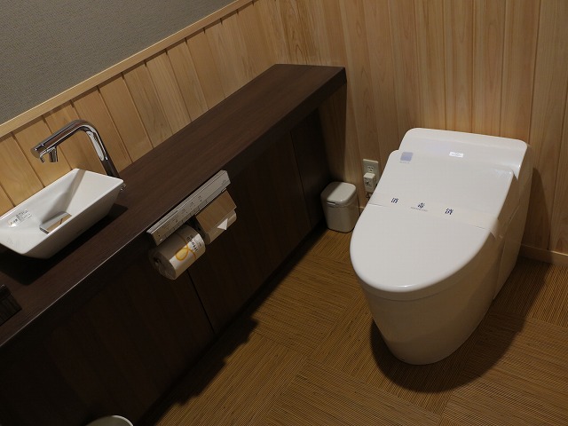 部屋にはいると少し踊り場があり、左側にはお手洗いがあります。お手洗いも抜けなく最新式で快適に過ごせるように出来ています。古い宿ですがこの新しさに何時も驚かされます。