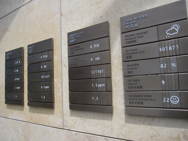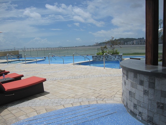 そのまま外に向かいプールを見学します。外のオープン プールは雰囲気が良いです。だれも入っている人は居ませんでしたが昼になると楽しめそうでした。