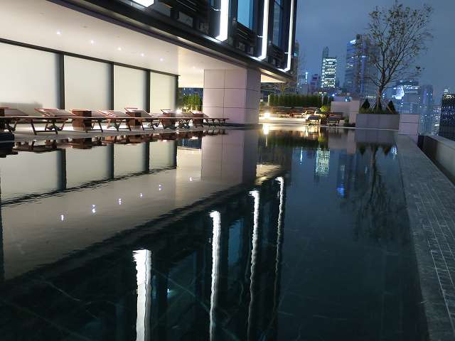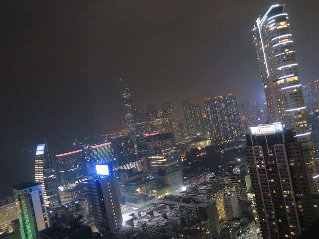 そして外に出るとオープンエリアで香港の夜景を楽しめます。単純な夜景なら部屋からでも楽しめるのですが、こちらはオープンエリアです・・・つまりシガーも此処で吸えるのです。シガーもバーに準備されているとの事です。私はこの事実を知らずにグランドフロアのバーでシガーを吸ってしまったので大失敗でした・・次回は必ずこちらで楽しみます。