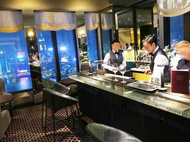 夕食の後に一人でマナークラブを訪問しますが、入った瞬間に「ようこそ!Mr.Yamanaka」と言われます。顔だけで良くわかりましたね(笑)今後もできるかは分かりませんが、このようなレベルをローズウッド香港は目指しているのでしょう。そのままスタッフが中を丁寧に案内してくれます。スタッフが居なければ気が付かなかったギミックはこの机です。詳細は敢えて書きませんが、マナークラブに夜に行かれた方はこの座席の近くまで来たら上下左右に目を凝らしてください。なるほどのギミックです!