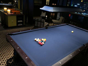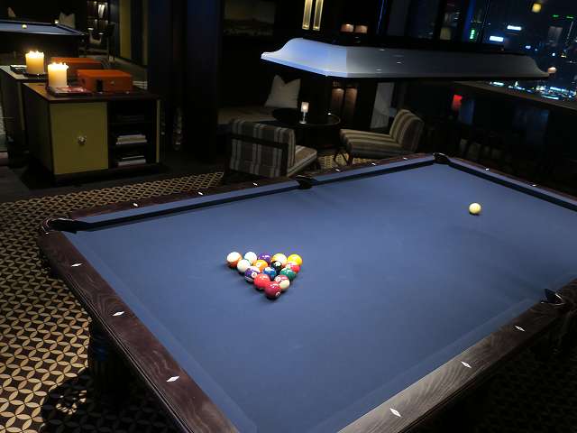 入って左側にはバーがあります。先ほど部屋まで来てカクテルを作っていただいた方もお見えになり軽く挨拶をします。更に奥に進むとビリヤードもできるように作られています。良いですね!今回はビリヤードをできる人とは来ていないので残念・・