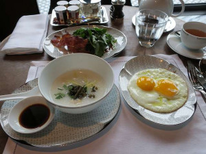私はお粥、サニーサイドアップ(クリスピー)とサラダを頂きます。旅の最中の朝食はとても大切ですからね!シェフも気軽に色々と対応して頂きサーブするスタッフの動きもキビキビしています。これが続くと良いですね!
