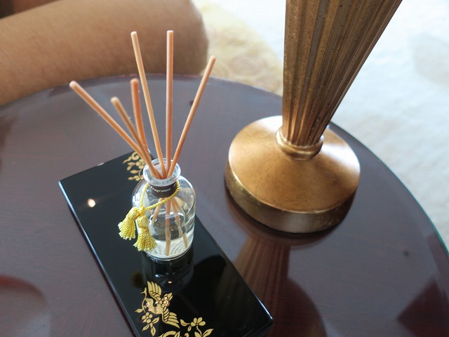 部屋の匂いは勿論 シャングリ・ラ エッセンスです。欲しかったら新しい物を持って来ましょうかとのバトラーの言葉です。家で既に使っていると伝えるとニヤリとされました。