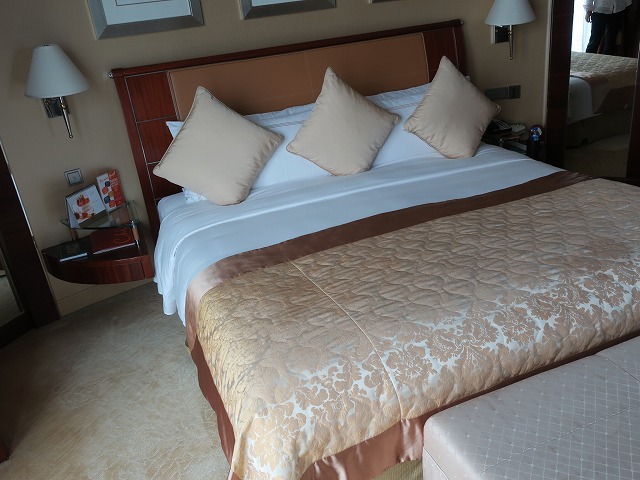 ベッドの良さはシャングリラの中でも更に一段上でした。ベッドサイドには余分な物はありません。USBのアウトレットぐらいはあると良いのですが、まだ準備されていないとバトラーの方は言われていました。しかし・・この準備された状態は完璧です。ベッドに横になると上海タワーが目の前です!もうこれ以上の上海での滞在があるのでしょうか・・?私は知りません・・