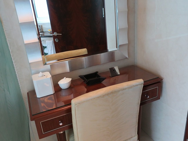 ベッドルームからバスルームの間にはパウダールームがあります。私には必要ありませんが重厚な鏡類が準備されれていました。