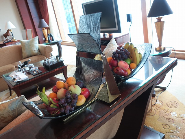 後ろに並んでいるフルーツなんてディスプレイ用かと思いましたが本物です・・・どれだけ食べても無くなりません・・部屋を出て戻るたびに完全に補充されているのでフルーツが不足する事はあり得ないでしょう・・・