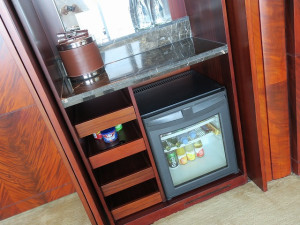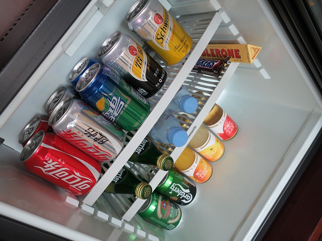 壁側にはミニバーがあります。お菓子の数やスナックなど・・悪くはないのですが少なく感じます・・実は・・これはサブなんです!キッチンが別にありほぼ無限に準備されていました。会食の時にはもちろん別料金でしたが、滞在中だけなら数人では飲みきれません。