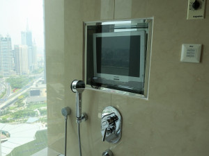 外の人に見れれるかも・・と思う人は電動のカーテンを下ろしてください。これで一安心です。テレビも湯船に入ってみる事ができます。二日目の夜はやる事は終わっていたのでノンビリとお風呂で音楽を聴きながら楽しみました。