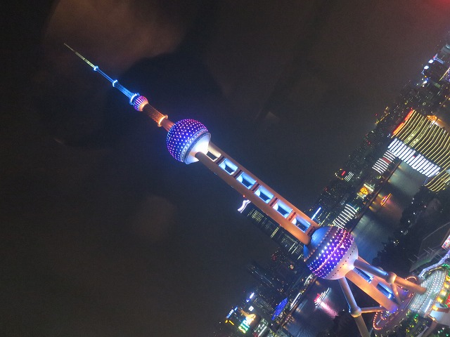 冷の逆の角には丸テーブルがあり6脚分の椅子があります。会議のためにこの部屋を取ったのですが会食も兼ねてパートナー達と食事を頂きました。しかしこれは・・上海一の夜景を見ながらの食事だったのではないでしょうか?パートナー達は景色も含めて上海の話で一頻盛り上がり24時前には帰って頂きます。バトラーの皆様お疲れさまでした・・
