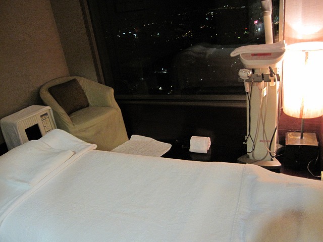 先ずは服を着替えて更衣室に向かいます。既にプールで楽しんだ後ですので、私はそのまま次に向かいます。奥に向かうと施術室です。夜の台北の町がそれなりに見えて楽しめました。残念ながら101は逆方向だったようです。