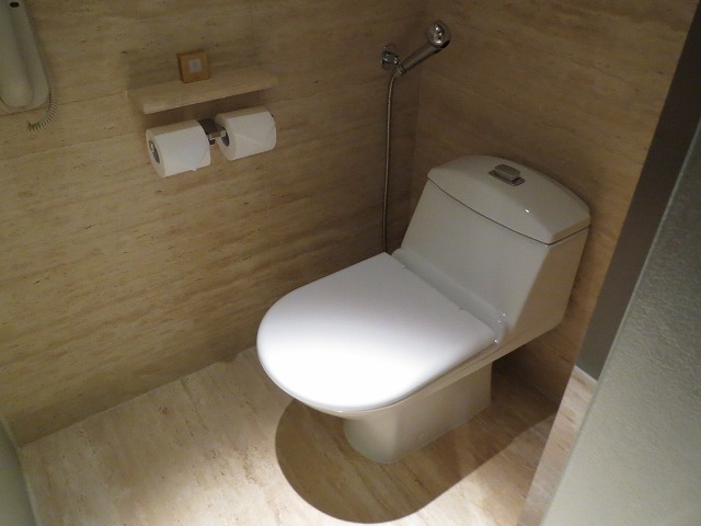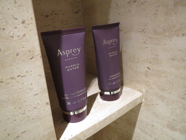 シャワーもシンプルです、アメニティもスイートと同じく歯ブラシやコットン等の準備は完ぺきです。同じくアメニティもASPREYで統一されています。トイレもシンプルで使い方は問題ありません。鏡が目の前にあるので最初は自分が見えるのでびっくりです!