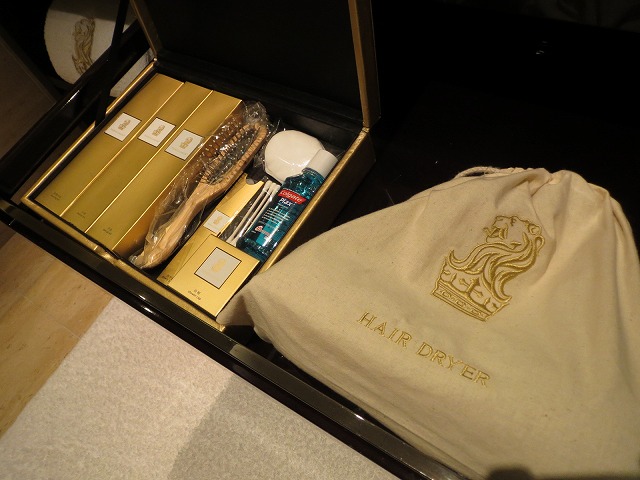 シンクはシングルですが使い勝手は間違いありません。到着と同時に私は何時もの自前セットを開きます。歯ブラシや髭剃りは自前の物を利用します。実はアメニティで使う物はほとんど無いのですが、準備がちゃんとされていると安心します。