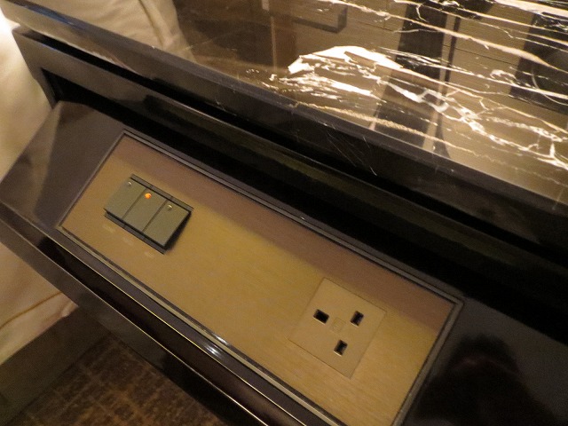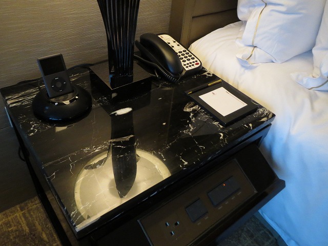 ベッドはもちろん私の好きな硬さです。隣にはシンプルで完璧なセットです。iPodと水と時計と電話と電源です。スイッチでコントロールできる電動カーテンもとてもありがたいです。普段はカーテンを開けっぱなしにして寝るのですが疲れているときにはカーテンを閉める時もあります。この時の遮光性もとても重要ですが、このホテルはカーテンを閉めれば完璧に暗闇になります。ちょっと寝たい時にこの暗さは良いですよ!
