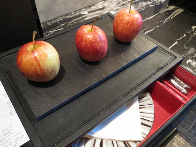 テレビの前には私向けのコンプリメンタリ―のスナックがあります。ディスプレイも完璧にパンダクッキー、マカロン、リッツカールトンチョコレート、リンゴ、ペリエにエビアンと私の好みを知り尽くした設定です。どうやって私の好みを知っているのでしょうか?むしろこれが標準なんでしょうか?次回GROに聞いてみます!