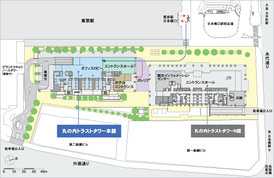 丸の内トラストタワー(http://www.mori-trust.co.jp/marunouchi/)の最上部27階~37階を使用しての開業です。ビルは一足早く2008年11月に開業予定との事です。本ビルは東京駅に隣接しており最高の位置になります。ホテルの入口も別に準備されていると図面上には記載されております。(図面の画像は丸の内トラストタワーからです)