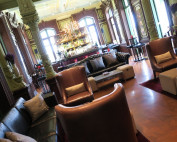 そして部屋は・・・完璧なデザインです。木目調の壁に木の床が落ち着いているのですが、カーペットや部分分で使われている鏡のような壁が如何にもWと思わせてくれます。右側には大きな大きなL型のソファーに丸机です。ソファーの上だけでも6人ぐらいは座れそうです。丸机の上には雑誌やマカロンのお菓子がW型で並んでいます。