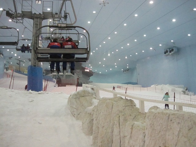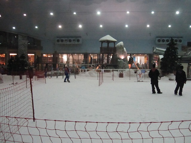 室内スキー場としては広さ長さ斜度共に文句ありません。昔のザウス(覚えている人はいますでしょうか?)を犬の足のように曲げたイメージです。現地の人ではありませんが、かなり上手な人が居て完敗です。流石に日本人は実際に滑っている人は居ませんでした。それよりも中の温度は-10度、外の温度は40度を超えているのが露骨に体に来ます。。。